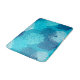 Bath mat in an underwater pattern of overlapping fan coral in shades of aqua, white and cobalt blue on a turquoise / sea blue background