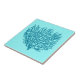 Ceramic tile patterned with a large sea fan coral in turquoise / peacock against a soft aqua background