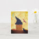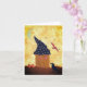 Fanciful Halloween or Samhain greeting card with tiny house that's made to resemble a witch's hat. It also features a crescent moon, pumpkins, and a crow. Blank inside.
