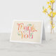 This beautiful card will make someone feel special and appreciated. The word Thank You is in a vintage font in boho colours on a cream background. Sprigs of greenery and dots decorate the spaces around the letters. The colours include orange, gold, green, turquoise, pink, and cream. Inside: Blank for your own greeting.