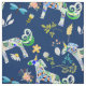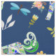 Delight a child or any fancier of unicorns. Large repeating fabric print is created with ornamentally patterned unicorns on navy, accented with dragonflies and flower botanicals. Choose from various sizes and fabric types.