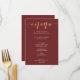 These Fancy Burgundy and Gold Typography Menu Cards will set the stage for an elegant dining experience. The faux gold foil for the word "menu" will pair nicely to many different background colours if you wish to customise.