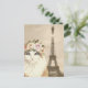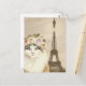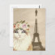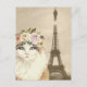 Vintage sepia tint background photo of the Eiffel Tower with overlay of beautiful watercolor fancy cat with floral crown