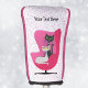 This custom golf club cover for your putters has two fancy cats each wearing a diamond collar sitting in a retro style pink chair on a white background with pink dots. Customise your text with the template.