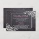 Chalkboard Tribal script fancy borders black and pink heart Wedding Details Card