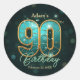 Fancy Chic Teal & Gold 90th Birthday Celebration Classic Round Sticker