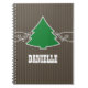 Sweet and whimsical Fancy Christmas Tree Swirls Notebook featuring a swirl border and dots highlighting a fun holiday tree on a faux wood panel background. This charming Christmas notebook is easy to customise with the text of your choosing. Click on the "Customise It" button to find additional personalisation options.