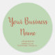 Fancy product green and orange Classic Round Sticker for your business. Fits handmade, baby goods, clothes, home business, flower shop, cakes