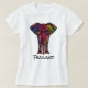 A cool t-shirt which says thailand (customise text to anything you want) with an abstract elephant design with a rainbow selection of bright vivid colours with decorative designs inside such as mandalas and geometric leaves and flowers.