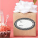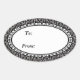 This gift tag sticker is an elegant fancy black and white damask design with white scrolls and a white oval in an ornate frame to write your message.