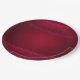 Paper plates with a red background decorated with elegant swirls and ornamental designs along the borders.