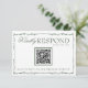 A classy and elegant calligraphy emerald green and white retro old money QR code wedding rsvp card. That has a vintage and modern white background with green script and hand written whimsical stylish wording and hand drawn branches. With scannable QR code on the center. Luxurious and chic with classic handwritten lettering. It is all editable by clicking on the personalize button.