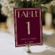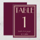 Classy and elegant whimsical ivory and fig wedding table numbers. As you see it features a fig background with cream beige script that match the whole suite.