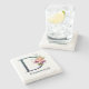 Stone coaster with fancy floral bouquet of gold leaves, purple rose and blue wildflowers embellishments on large letter / initial D. Customise by adding your name or other message