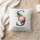 Beautiful and fancy florals include gold leaves, purple rose and blue wildflowers embellishments on large navy blue letter / initial S. Personalise with name or other special message