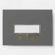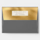 Elegant all-purpose envelope done in grey, with graphics of a gold framed white address area with a gold ornamental swirl, on the front and a solid gold back flap. Inside the envelope there is graphics of a solid gold foil lining. Personalise the return address to suit your needs. Great for special occasion invites, thank you cards and announcements.