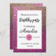 Fancy girly hot pink gold glitter birthday invitation
