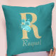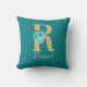 Fancy Gold & Aqua Floral Letter R Throw Pillow