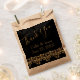 Fancy favour bags for weddings, anniversary parties and more, features gold coloured customisable text with bottom gold filigree border and black background