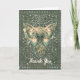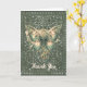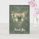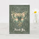 Folded greeting card features beautiful AI generated digital art design of a Steampunk butterfly in greens on a vintage ornate vines background. "Thank you" text on front can be customised or removed. Available as both a printed card and a digital download