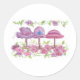A coloured pencil and watercolor drawing of fancy hats on hat stands.