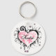 Cool looking key chain with a grunge style designed heart, in pink, with black swirls and flowers all around it. Makes a great little gift. Customise the text to anything you want.
