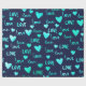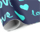 Fancy Heart Ocean Blue Navy Glitter Love Valentine Wrapping Paper
