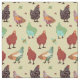 Rich colours and several fun hens in loses for a whimsical fabric with chickens.