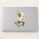Fun design that features a lizard with a tennis racket surrounded by bugs and flowers.