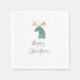 A simple, almost minimalist design featuring the head of a colourful deer, the words in a fancy cursive script: Merry Christmas, and a grey polka dot background.