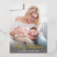 Fancy "Merry Christmas" on front in gold foil with gold foil border. Add your photo, name, year and message on back. Back has gold script text and gold stars on deep red background.