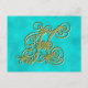 Fancy royal elegant monogram letter H in golden yellow on a cloudy background (can be deleted) placed on a coloured background that can be changed too to any desired colour or deleted entirely and replaced with a personalised photograph. Every letter of the alphabet is available on postcards with matching postage stamps in my Gallery. In addition, greeting or note cards are available while on the stamp image of the monogrammed letter of your choice.
