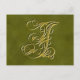 Fancy royal elegant monogram letter I in golden yellow on a cloudy background (can be deleted) placed on a coloured background that can be changed too to any desired colour or deleted entirely and replaced with a personalised photograph. Every letter of the alphabet is available on postcards with matching postage stamps in my Gallery. In addition, greeting or note cards are available while on the stamp image of the monogrammed letter of your choice.