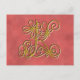Fancy royal elegant monogram letter K in golden yellow on a cloudy background (can be deleted) placed on a coloured background that can be changed too to any desired colour or deleted entirely and replaced with a personalised photograph. Every letter of the alphabet is available on postcards with matching postage stamps in my Gallery. In addition, greeting or note cards are available while on the stamp image of the monogrammed letter of your choice.