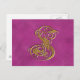 Fancy royal elegant monogram letter S in golden yellow on a cloudy background (can be deleted) placed on a coloured background that can be changed too to any desired colour or deleted entirely and replaced with a personalised photograph. Every letter of the alphabet is available on postcards with matching postage stamps in my Gallery. In addition, greeting or note cards are available while on the stamp image of the monogrammed letter of your choice.
