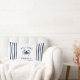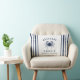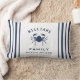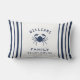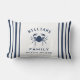 Fancy Navy Blue White Family Name Beach House Crab Lumbar Cushion