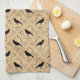 Fancy Pattern with Crows. Black and Beige. Tea Towel