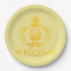 The pineapple has been a symbol of hospitality for centuries. Golden pineapple silhouette and wreath graphics with "Welcome" text