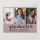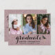 Share the joyful news of your graduation with this fancy pink glitter invitation postcard. All photos and text are simple to customise. The design features modern minimalist typography with handwritten graduate and 3 of your custom pictures on the front. A graduation hat is added for the joyous occasion, keep or delete it to your liking. This unique golden announcement postcard is an elegant way to inform your closest friends and family to visit your joyous day of celebration.
