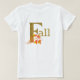 Pretty Fall / Autumn design features capital letter "F" with golden brown / brown plaid fill and an overlay of watercolor orange coloured fall leaves, on white background
