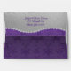Elegant special occasion envelope done in a silver foil look, with a purple satin looking damask pattern edged with faux diamonds, on the lower front and back. Personalise the return address to suit your needs. Great for special occasion invites, thank you cards and announcements.