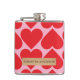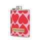 Fancy Romantic Red & Pink Hearts Pattern With Name Hip Flask