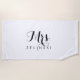 This fancy script calligraphy minimalist beach towel is the perfect gift to present the bride-to-be with for a simple bridal shower. The design features a beautiful calligraphy font in a white background.