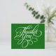 Fancy handwritten script Thank You postcards in Christmas Green. Perfect for Weddings, Birthdays, Christmas, Showers or any other occasion. Christmas Green colour 'Thank You' postcards, if required, choose any other colour or add your own printed text, address or company name from the "Customise It" tab.