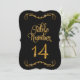 Table Number 14 DESIGN COLLECTION: In black with a golden glitter metallic look with a dimensional effect that is perfect to coordinate with a wide range of weddings, bridal showers, business and formal reception events. This is a hand lettered calligraphy font with scrolls, swirls and elegant handwriting lettering. There is a lovely leaf swirl flourish at the top and bottom that accentuates the shape of the cut edge. You will need a number stand or frame to use these effectively - which are not provided. Available in numbers 1-25 stock, we can add additional numbers if your event is large enough to require them. We can also do custom colour combinations for a small additional fee. COLOR PALETTE: Ebony black and Faux Gold Glitter Metallic Look