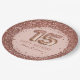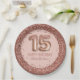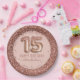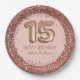 Fancy Script Pink Glitter Happy 15th Birthday Paper Plate