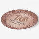 Fancy Script Pink Glitter Happy 16th Birthday Paper Plate