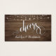 Thanks for checking out this design! Still exploring options? Please take a look at this collection: http://tinyurl.com/drinktickets // Treat your wedding reception guests to a cocktail or two with the help of these drink tickets. Elaborate text overlays are designed using a fancy script font. On the front is "let us buy you a drink" and on the back is "cheers". Use my template fields to customise the cards with your personal details. The background is covered in a horizontal rustic brown wood pattern which has been accented with strands of bright white twinkling lights. Great for country, casual or mountain wedding event celebrations. This is part of a growing set filled with coordinating designs. // 73 // Designed by Melody Watson for Paper Muserie.