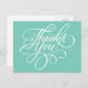 Fancy handwritten script 'Thank You' postcards in Turquoise. Perfect for Weddings, Birthdays, Christmas, Showers or any other occasion. Turquoise colour 'Thank You' postcards, if required, choose any other colour or add your own printed text, address or company name from the "Customise It" tab.