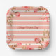 Fancy Stripe With Coral Floral Paper Plate